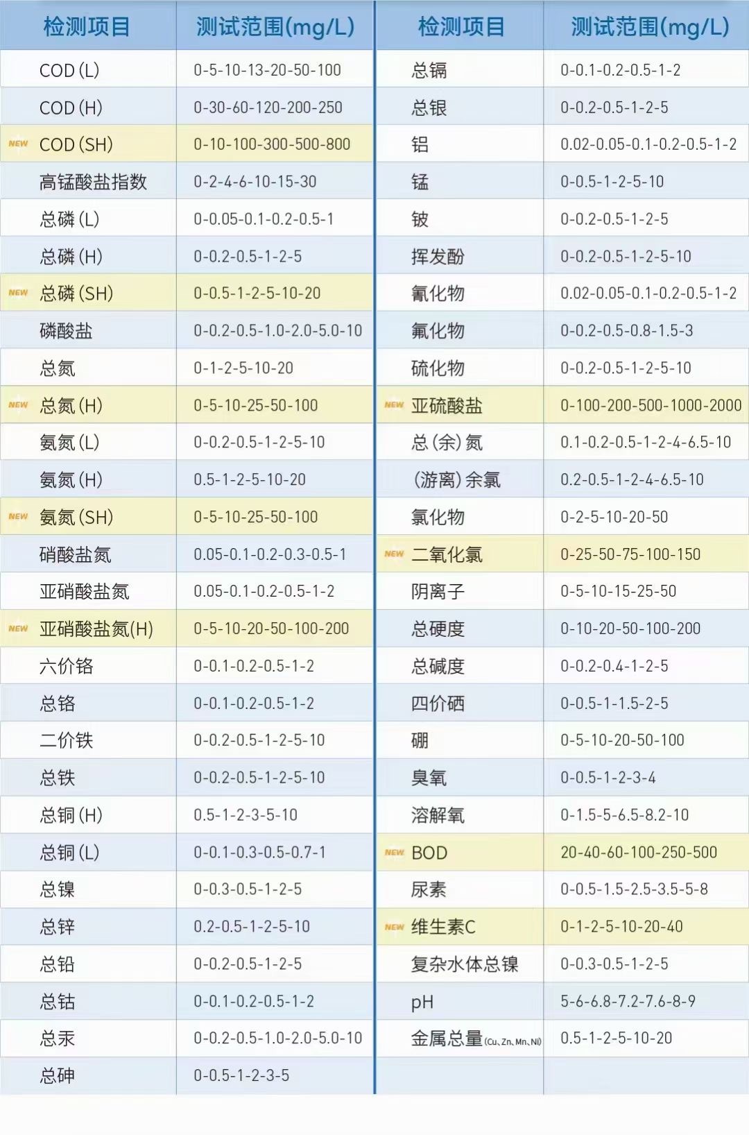④、種類齊全:65款常見水質(zhì)污染物等, 檢測項目多, 檢測范圍廣;